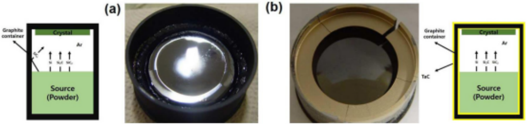 Schematic diagram of conventional graphite crucible (a) and TAC coated crucible (b)