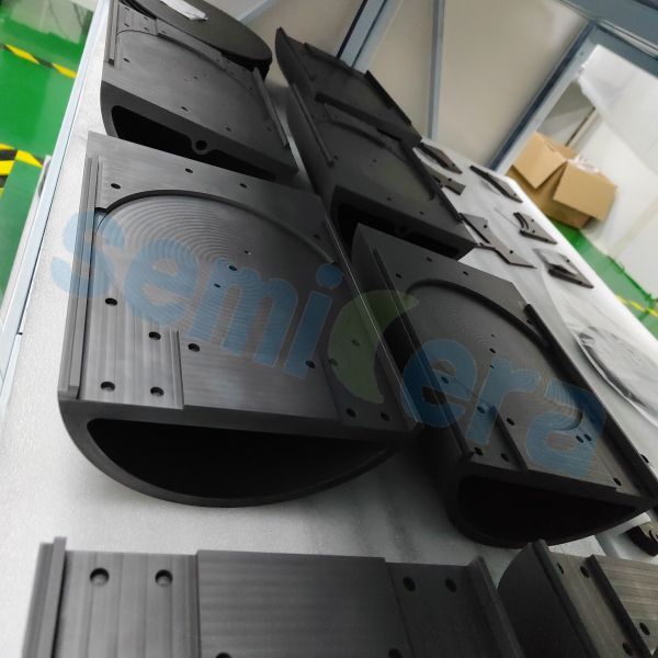 SiC Coated Graphite Halfmoon Part is a key component used in semiconductor manufacturing processes, especially for SiC epitaxial equipment. We use our patented technology to make the halfmoon part with extremely high purity, good coating uniformity and an excellent service life, as well as high chemical resistance and thermal stability properties.